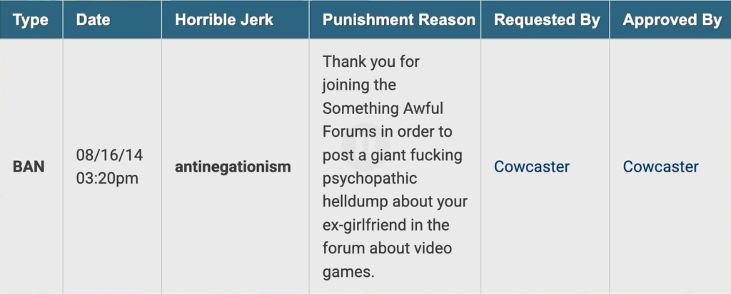 Lowtax , que já estava de saco cheio, não se furtava de banir usuários que postassem hentai e outros conteúdos relacionados. Eventualmente ele bane definitivamente hentai do Something Alwful e essa base de usuários migra para o 4chan, onde entendem ser um espaço “mais livre”. E foi justamente essa “liberdade” que permitiu florescer as capacidades de mobilização do site. Banir hentai do Something Awful ainda traria um efeito borboleta imensurável na história da política mundial.